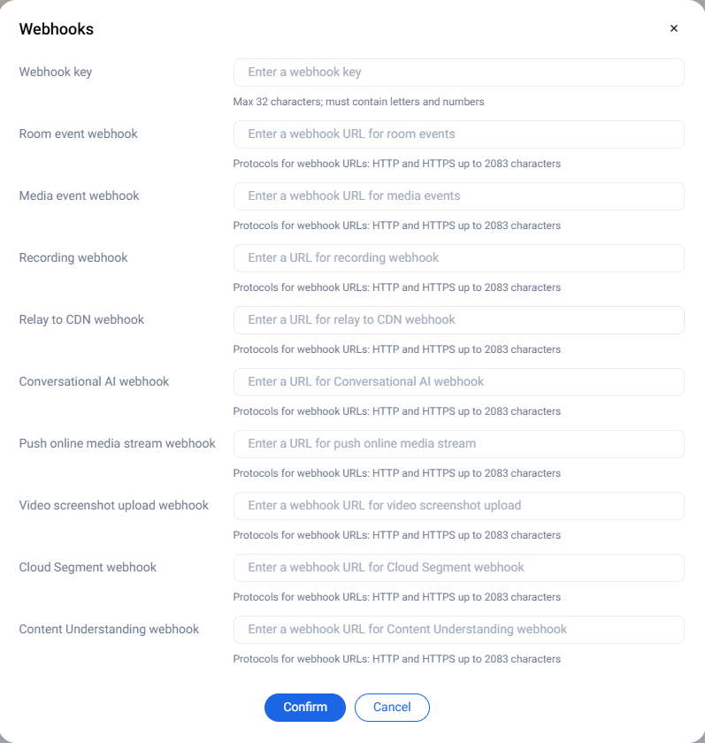 录制回调:用于 云端录制 功能的相关事件回调,支持云端录制模块启动、退出、云端录制上传模块启动和上传结束等事件通知。可查看 更多回调事件说明