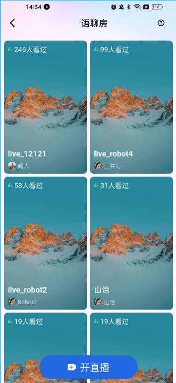 恭喜您,现在您已经成功集成了语聊房组件并完成了登录。接下来,您可以实现主播开播、观众观看、直播列表等功能,可参考下表: