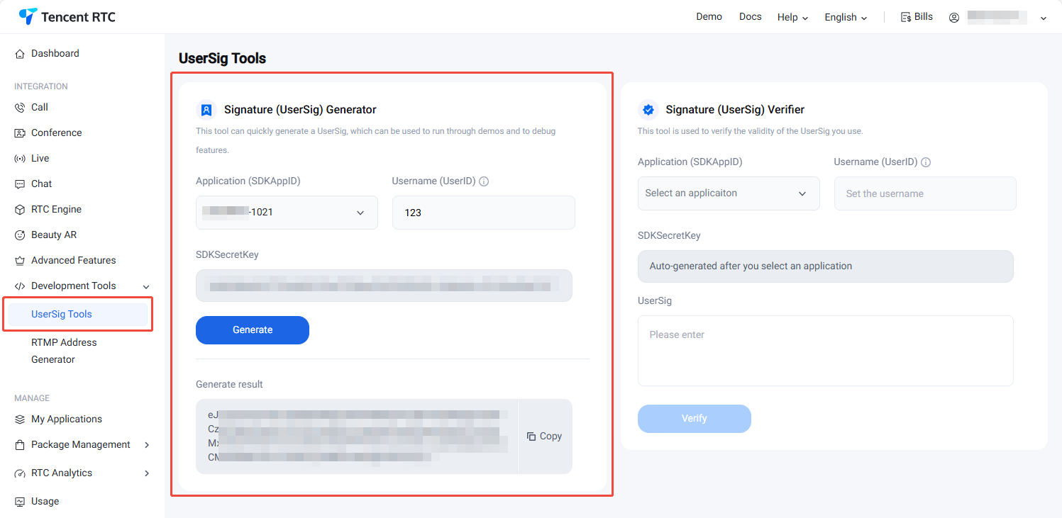 SDKAppID,新创建应用的 SDKAppID,已在上文 创建应用 中获取到。